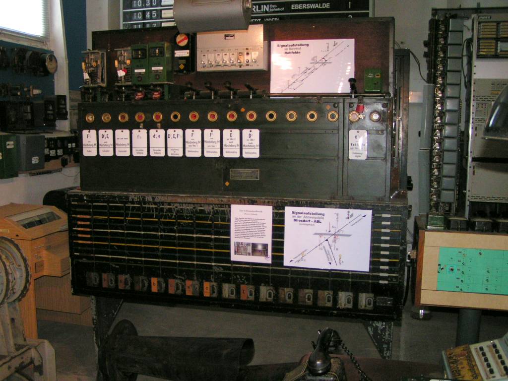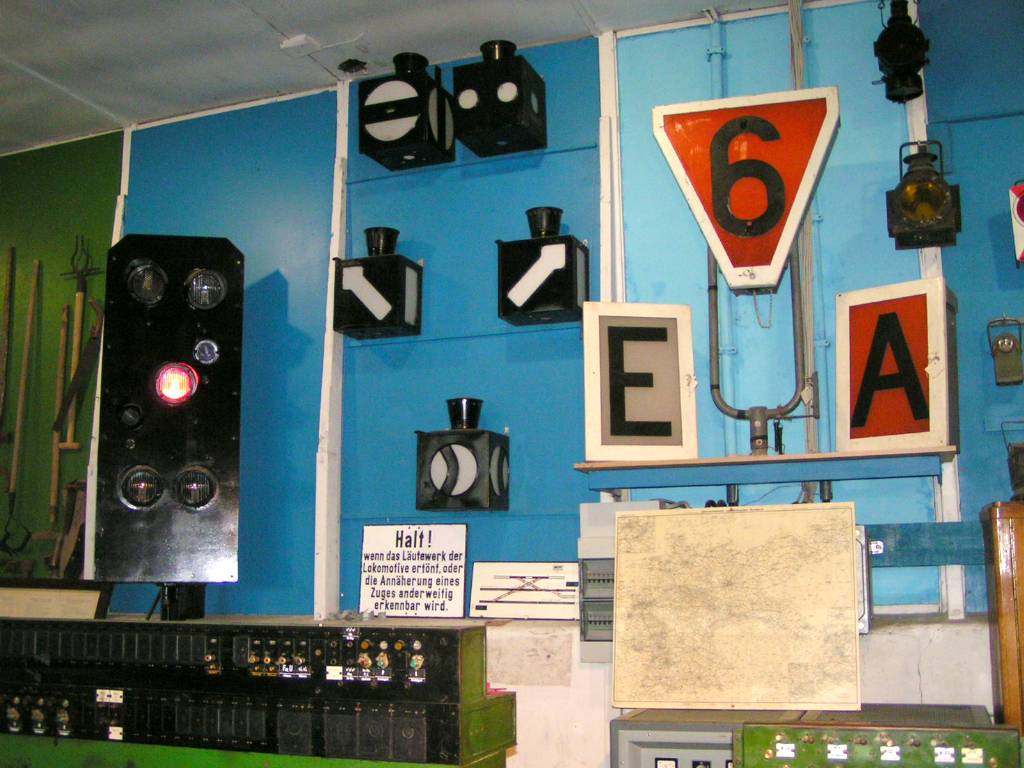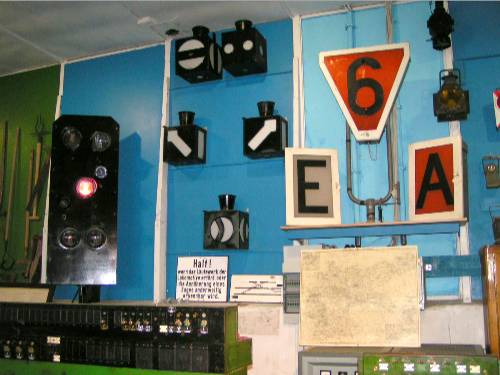 Uhren und Fernmeldetechnik gezeigt. Im Außengelände ist ein Signalgarten aufgestellt worden, der vom mechanischen Signal bis zum KS-Signal alle Signaltypen zeigt. Weiterhin gehören ein paar Schrankenanlagen und Läutewerke zur Ausstattung.